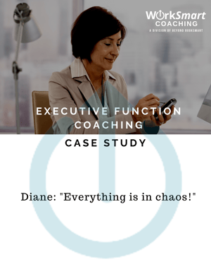 Diane was an insurance professional in her mid-50's who had a lifetime of challenges with keeping organized, managing her time, and more. Her coach helped set her on the path to achieving her personal and professional goals. Complete the form below and download our case study to learn more about Diane's coaching journey.